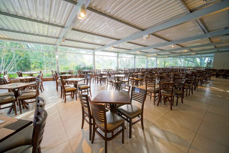 A estrutura do resort inclui um restaurante com capacidade para 350 pessoas, oferecendo diferentes opções de cardápio, incluindo coffee break, happy hour e coquetéis. Os participantes contam ainda com a facilidade de deslocamento entre os espaços, já que as salas, os apartamentos e o restaurante estão distribuídos de forma acessível.