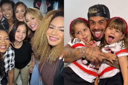 A musa fitness entrou na brincadeira, cantando com entusiasmo e até gritando o nome do ex-marido junto aos colegas. A cena, leve e descontraída, rapidamente se tornou assunto nas redes sociais.