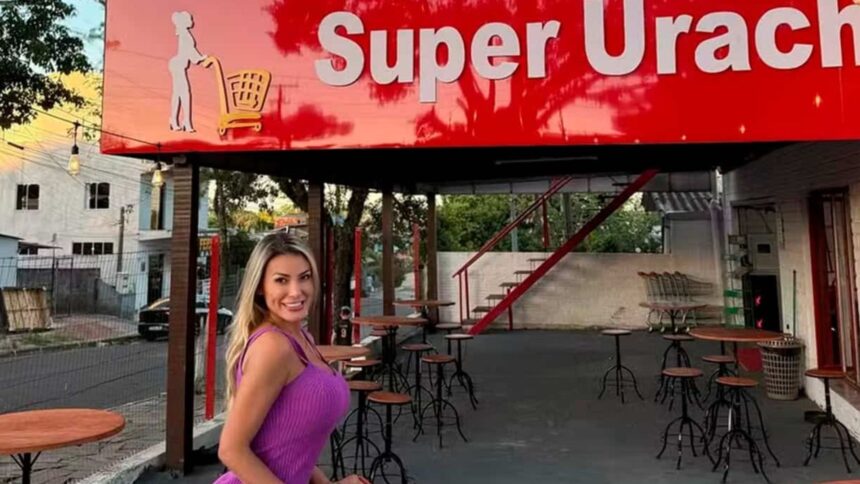 Nesta quinta-feira (16), Andressa Urach surpreendeu seus seguidores ao anunciar, pelo Instagram, a abertura de seu próprio supermercado, o Super Urach, localizado em Viamão, no Rio Grande do Sul. Em tom de entusiasmo, a influenciadora escreveu: “Já conheceu meu supermercado? Muito feliz! Esperamos vocês!”