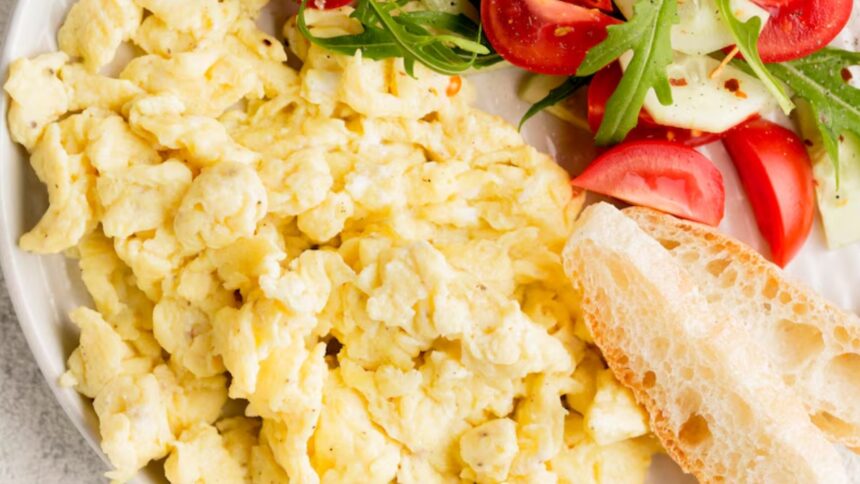 Ovos mexidos com maçã e pasta de castanhas