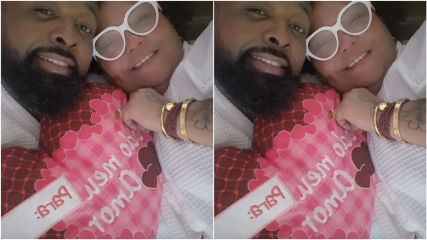 Na publicação, Babi Cruz e André Caetano surgem abraçados e sorridentes, segurando uma almofada em formato de coração. Para acompanhar o clique, a viúva do sambista escolheu a música Casa do Amor, de Ferrugem, que fala sobre amor e união: “Pegue as suas coisas, pode se mudar para minha vida. Bairro da paixão, casa do amor, rua sem saída”.